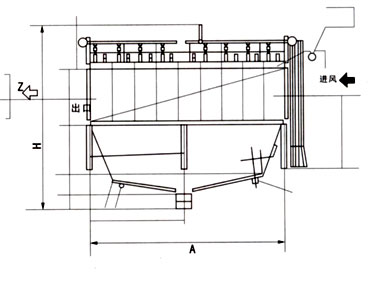 氣箱脈沖除塵器主要尺寸: